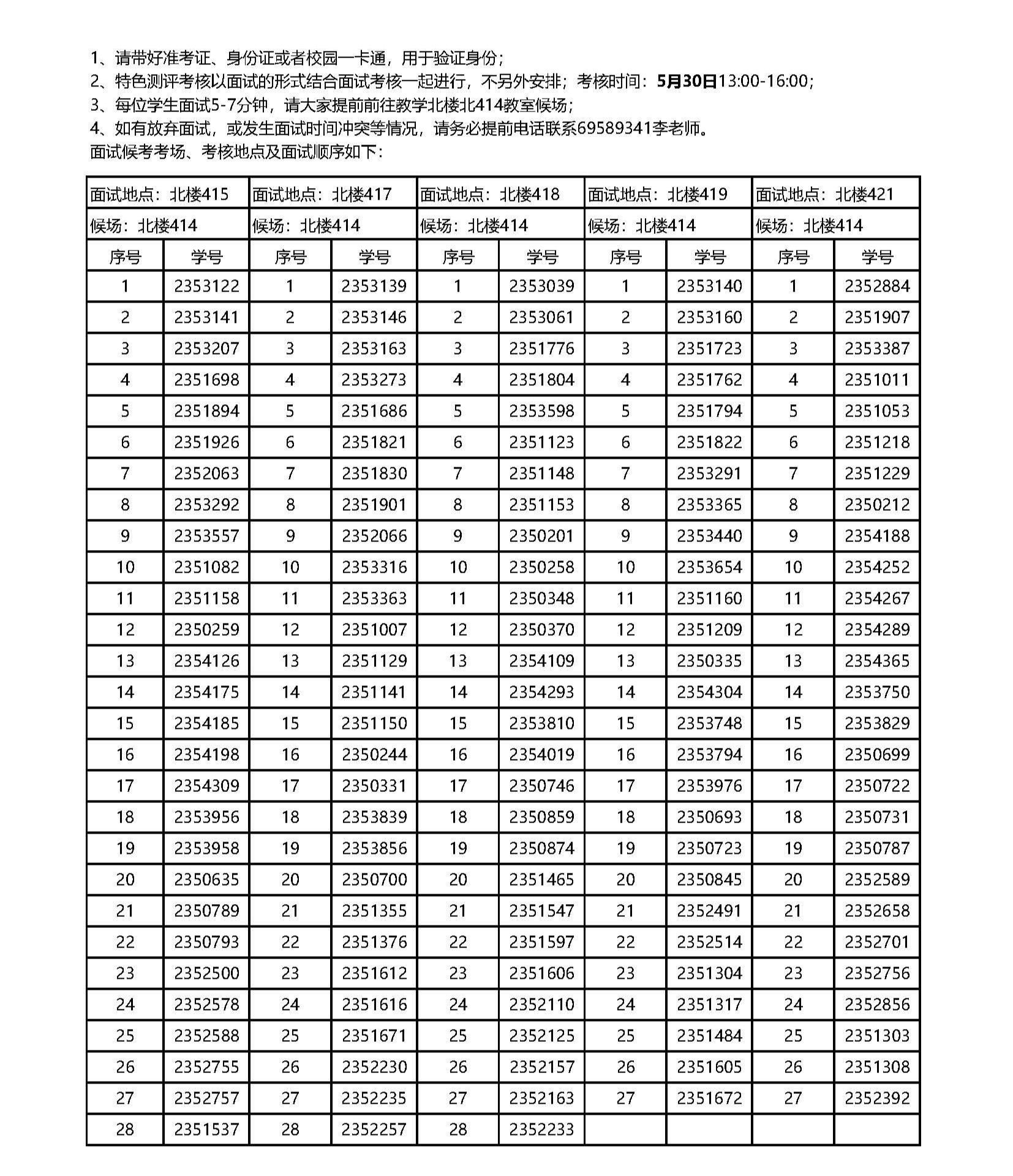 菠萝视频 2023级主修专业确认跨类面试学生分组安排表