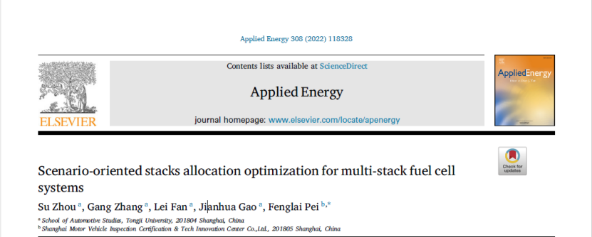 [2] Su Zhou, Gang Zhang, Lei Fan, Jianhua Gao, Fenglai Pei,, Multi-stack fuel cell system stacks allocation optimization based on genetic algorithms,applied energy2022)118328.
