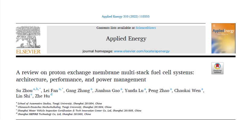 [1] Su Zhou , Lei Fan, Gang Zhang, Jianhua Gao, Yanda Lu, Peng Zhao, Chaokai Wen, Lin Shi, Zhe Hu, A review on proton exchange membrane multi-stack fuel cell systems: architecture, performance, and power management, Applied Energy 310 (2022)118555.