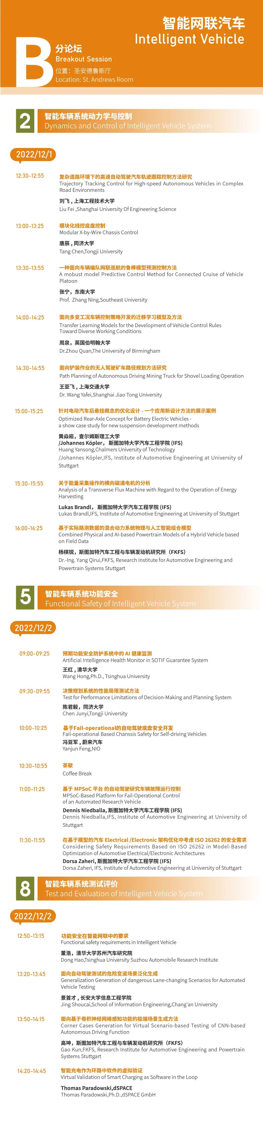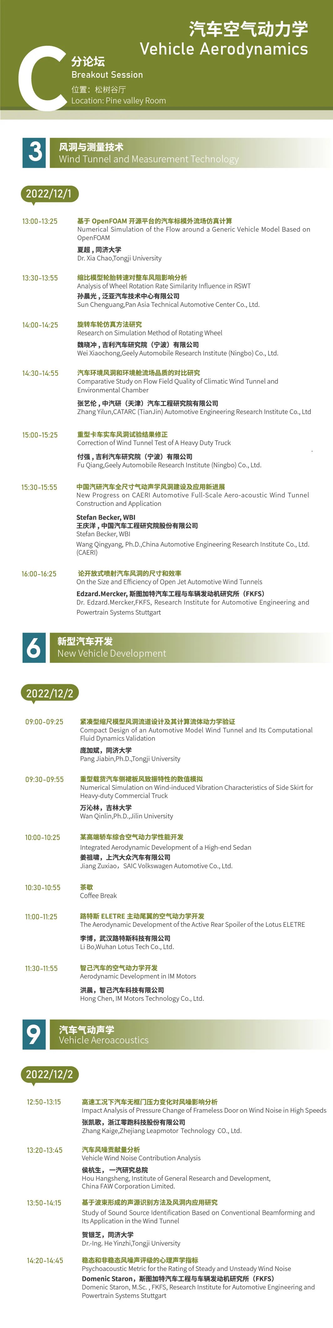 9 breakout sessions combine 48 technical speech on the topic of “Fuel Cell”, “Hydrogen and e-fuel”, “Battery”, “Dynamics and Control of Intelligent Vehicle System”, “Functional safety of intelligent vehicle system”, “Test and Evaluation of Intelligent Vehicle System”, “Wind Tunnel and Measurement Technology”, “New Vehicle Development” and “Vehicle Aeroacoustics”.