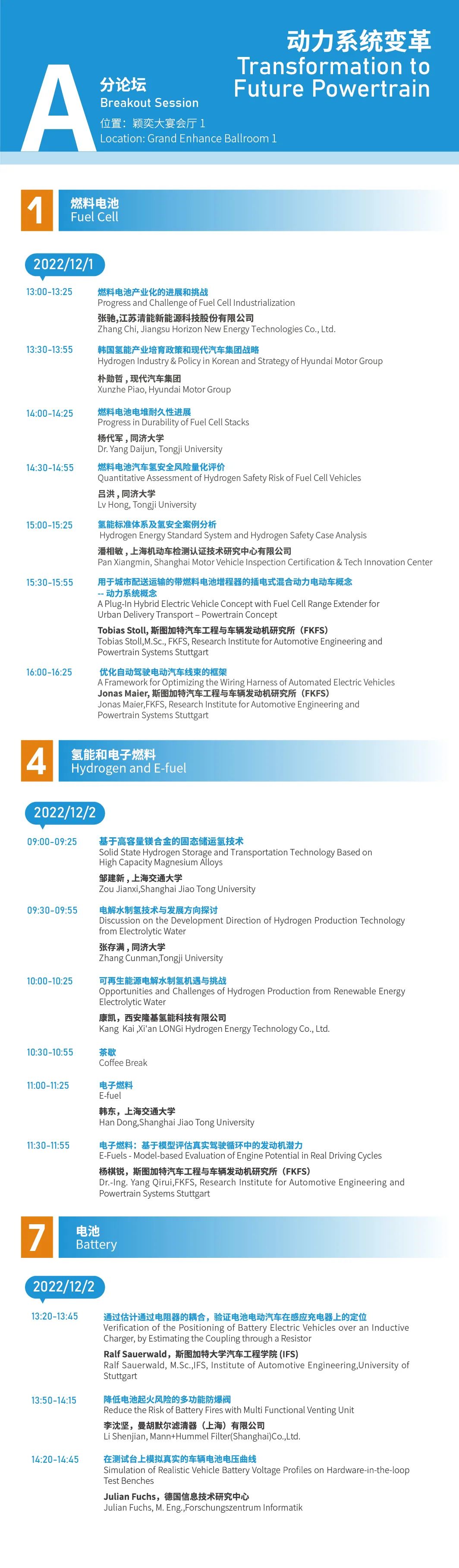 9个技术分论坛将涵盖48场技术演讲,主题分别为“燃料电池”“氢能和电子燃料”“电池”“智能车辆系统动力学与控制”“智能车辆系统功能安全”“智能车辆系统测试评价”“风洞与测量技术”“新型汽车开发”“汽车气动声学”。