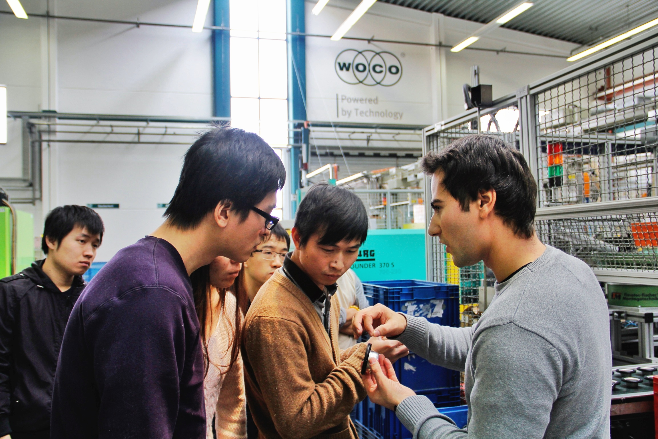 的在德留学生抵达了WOCO集团位于德国Bad Soden-Salmünster的研发与生产基地,并在WOCO无锡分公司副总裁王晓文先生与WOCO工业技术有限公司人力资源专员 Jana Amrhein女士的全程陪同下,展开了为期两天的学习访问活动。