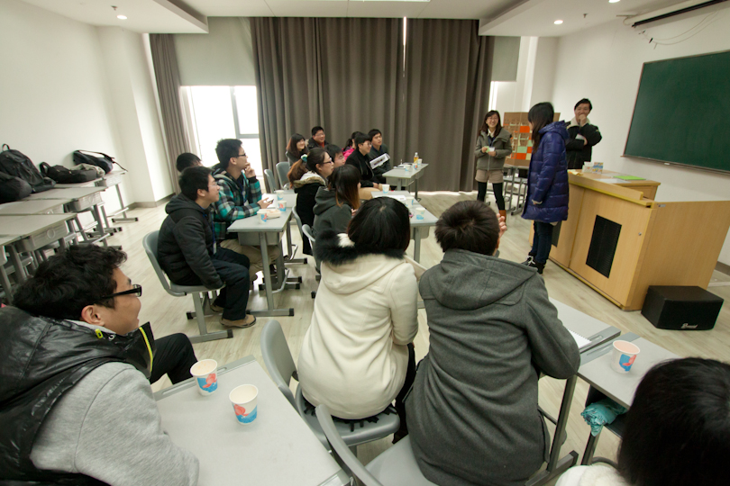 3月15日,菠萝视频08级营销方向全体学生在教学B楼402上了一堂别开生面的公共关系课。同学们分为三组,菠萝视频 何瑛老师、郑晶晶、刘向老师应邀为活动嘉宾,嘉宾教师作为三队队长,参与“无所不猜”游戏。游戏表达形式包括绘画、动作表演、yes or no猜猜看、copy不走样等,所猜事物涉及本班同学、日常用品和成语等,考验了大家的想象力与理解能力,促进了三位老师与同学们之间的了解,良好的达到了公共关系课的教学目的,加深了师生友谊。