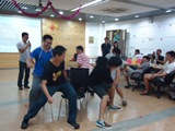 晚会节目多样,包括歌曲、乐器、小品、观众献唱和穿插其中的互动游戏。一曲激起同学们淡淡乡愁的女声独唱《爸爸妈妈》拉开了晚会的序幕。西方文化气息浓郁的萨克斯独奏《城里的月光》博得了大家的热烈掌声;由同学们自导自演的小品《新白娘子传奇》笑点密集,将晚会推向一个转折点,现场气氛变得更加活跃。之后, “copy不走样”、“数七”、“气球保卫战”等一轮轮有奖游戏环节激起了一个个小高潮,其间还穿插了现场观众同学们的自发献唱,让大家充分展现自我。最后,晚会在送出神秘大奖的抢凳子游戏中圆满结束。