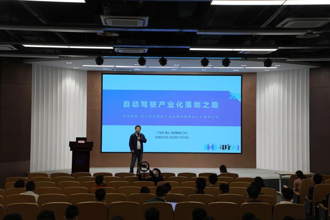 2022年11月15日,第六十四期“同车行”大讲堂在新能源汽车工程中心报告厅顺利举行。联合国自动驾驶及网联车辆(WP.29/GRVA)专家,哈尔滨工业大学(威海)外聘导师,现任寻序智能创始人/CEO,丁华杰博士进行了主题为“自动驾驶落地之路”的报告。