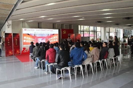 一楼大厅举行专题学习,通过长效学习,稳步提高师生们的政治素质与自身修养。