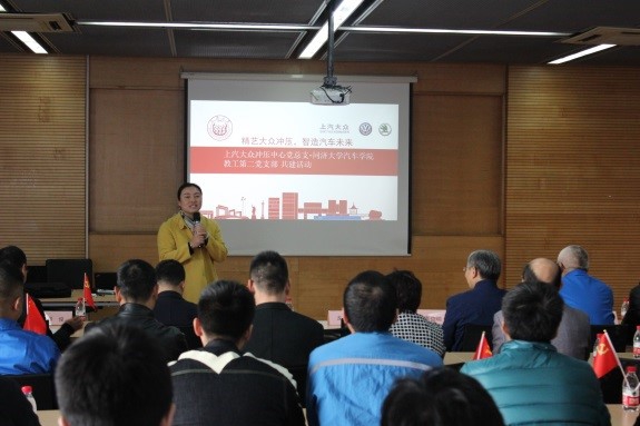 的历史、现状以及教工二支部的情况。冲压中心党支部李益明书记介绍了上汽大众党建情况、2018年度生产任务开展情况,以及在上汽大众“共创2025战略”下,共同开展校企合作工作、“数字化生产”党建科技联盟的重要意义。