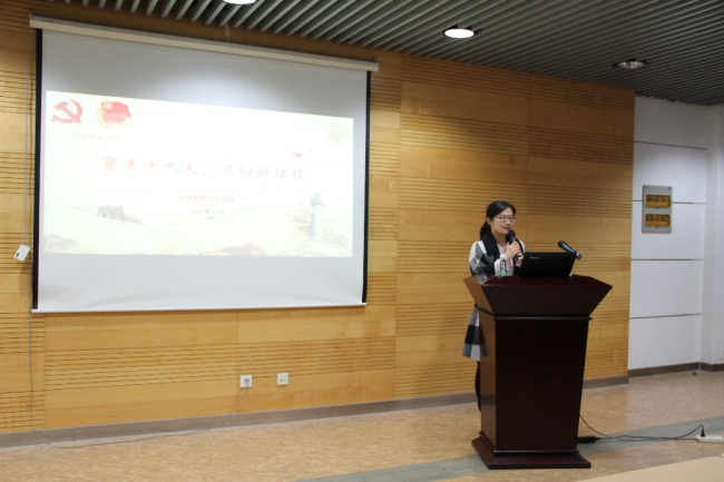 学习贯彻党的十九大精神宣讲团成员陈翌老师带领全院学生入党申请人、团支部骨干全面学习新党章和十九大精神,旨在通过党团一体开展学习教育,推动党团组织工作的规范化并进一步做好入党启蒙教育和理想信念教育。院党委副书记邓俊老师、学工办主任葛畅老师及菠萝视频
