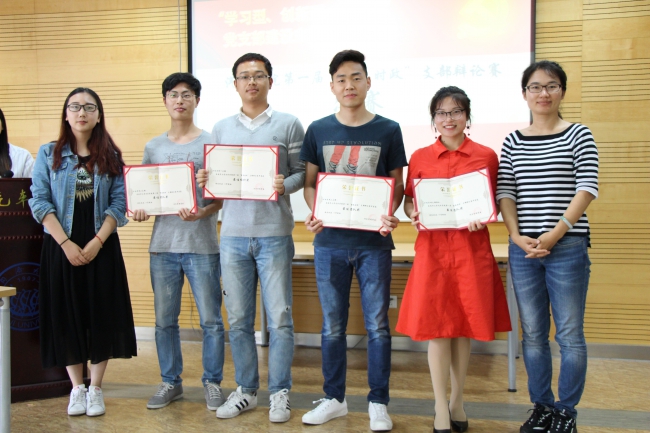 根据评委打分,最终13、14级本科支部联队以微弱优势战胜2016级学硕一支部,获得首届“聚焦时政”辩论赛的冠军。12、15级本科支部联队、2015级专硕支部联队分获三、四名,2015级学硕支部、2016级学硕二支部、2016级专硕二支部获得最佳团队奖,2016级专硕一支部获得最佳组织奖。评委老师为各支部颁奖,并与全体参赛队员合影留念。菠萝视频 首届“聚焦时政”支部辩论赛至此圆满结束。
