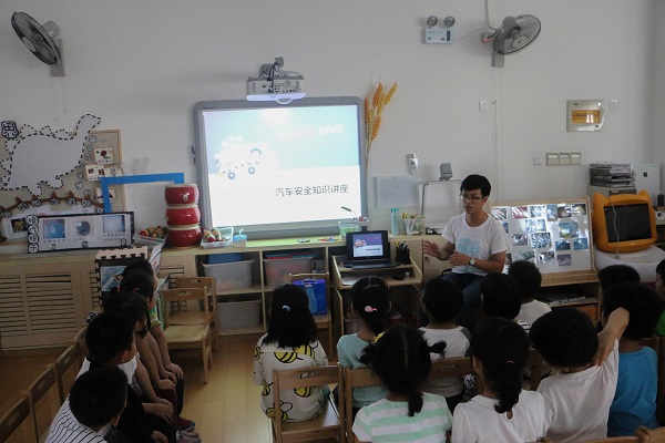 第一环节是汽车文化宣讲,三个支部分别派出志愿者在各自负责的班级进行儿童安全座椅和汽车安全技术两个方面的宣讲。党员志愿者结合前期精心准备的PPT,用小朋友们听得懂的语言和看得懂的动画,普及了汽车安全知识。听完讲解后,小朋友们纷纷表示,以后在乘车过程中会多多注意安全,主动乘坐安全座椅,并提醒自己的爸爸妈妈也要系好安全带。