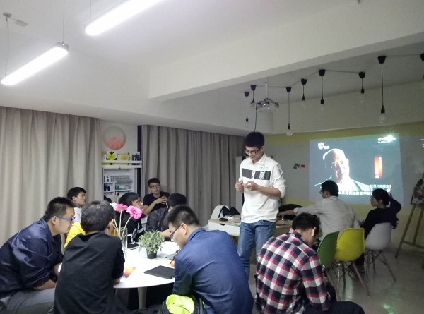 2016级学硕一支部于嘉定校区朋园社区活动中心举行“学习长征精神”专题组织生活会。支部书记季运康同志以幻灯片的形式向支部各位同志介绍了长征的过程和精神,之后同志们观看了纪录片《长征》,并交流了感想。