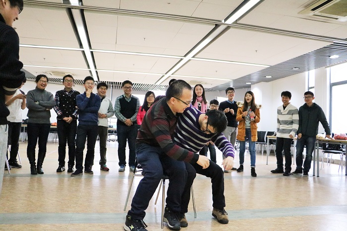 第一个环节是“汉字英雄”,答题双方根据ppt给出汉字的偏旁部首说出带有该偏旁或部首的汉字,轮流答题,十秒钟答不出立即淘汰,率先将对方所有队员淘汰的队伍获胜。在活动中,双方队员都有精彩的表现,有连续坐庄横扫对方几员大将的学霸博士,也有挽狂澜于既倒,扶大厦之将倾的机灵学弟,双方交替领先,不分伯仲。