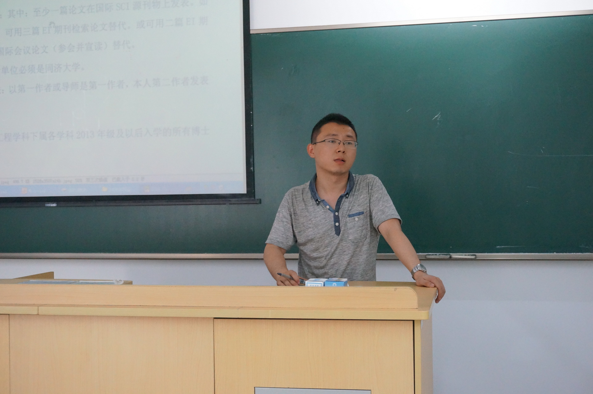 2013级博士班班长阚泽超首先向大家讲解了申请博士学位发表学术论文的规定,包括发表论文的类型、数量变更情况及相关论文的发表途径,并邀请2013级博士中已经发表2篇SCI论文的赵天天博士就论文发表的经验、体会与在场博士进行交流。钦佩之余,同学们也纷纷提问,向优秀博士取经问道。