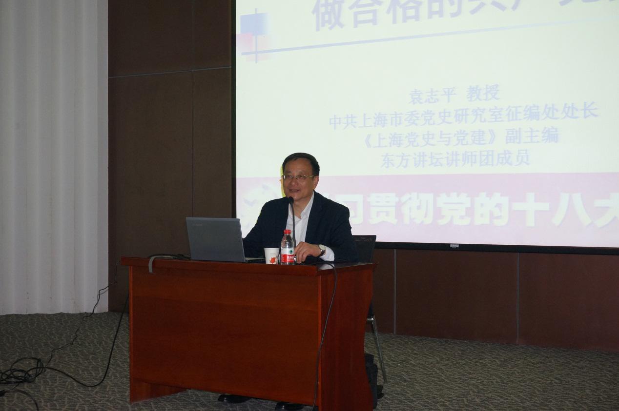 会上,袁教授用精炼的话语和丰富的事例带领在座党员和党校学员回顾了历部党章的主要内容、党章的演变过程、改革开放对人民生活的巨大影响以及中国特色社会主义建设取得的伟大历史成就,着重分析了十八大党章修改的主要内容,并为在座的党员和党校学员解释了信仰的作用和意义。