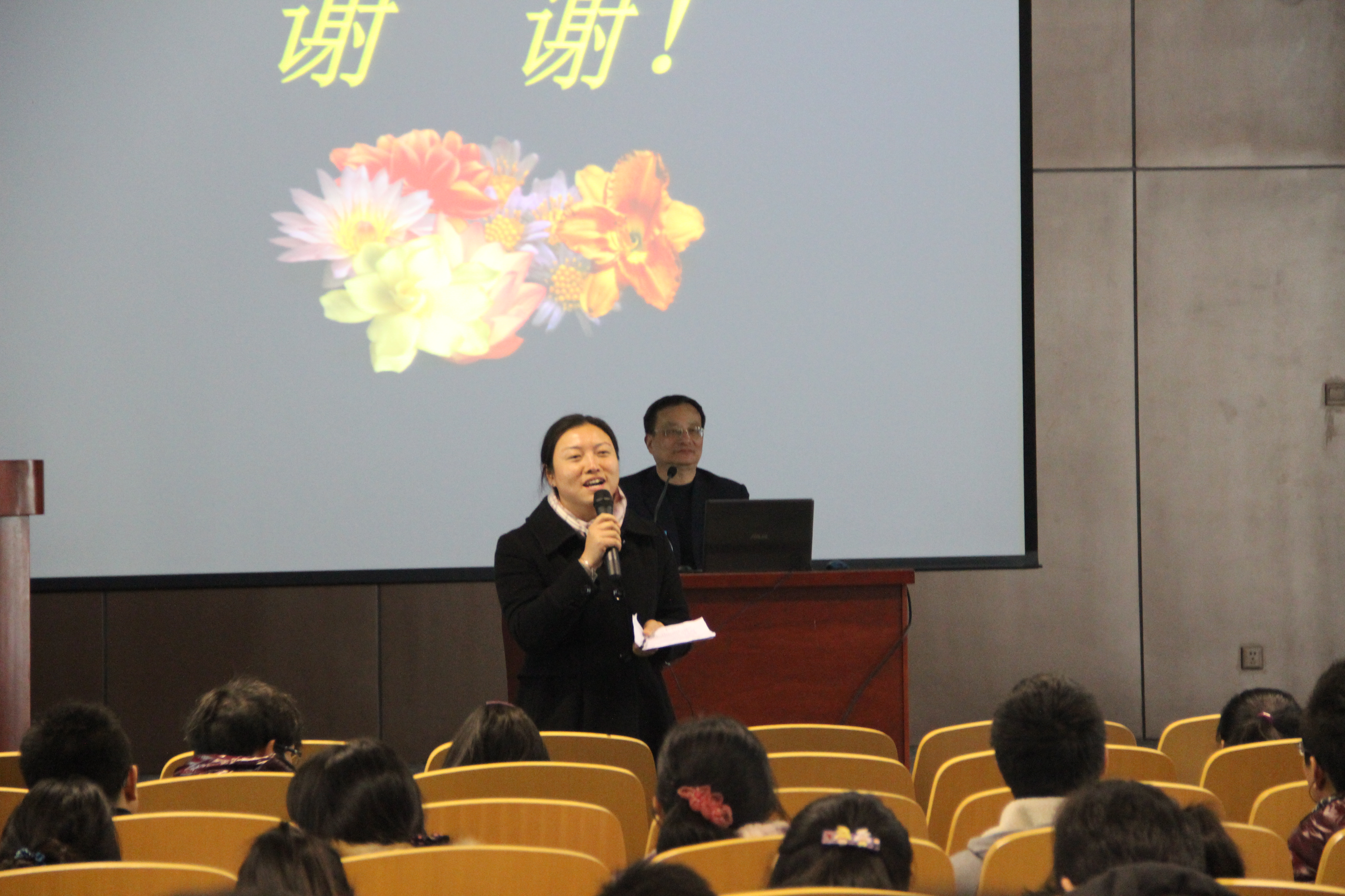 党委副书记曹静老师主持,对袁志平教授的到来表示了热烈的欢迎。报告内容分三个部分开展,分别为:十八届三中全会召开的时代特征、全会《决定》展现的时代特色和上海全面深化改革的时代责任。报告会上,袁志平教授还为我们进一步解释和阐述了十八届三中全会《决定》的亮点、民生改革的看点、改革的指南针、总目标、路线图、任务书、聚光点和时间表。