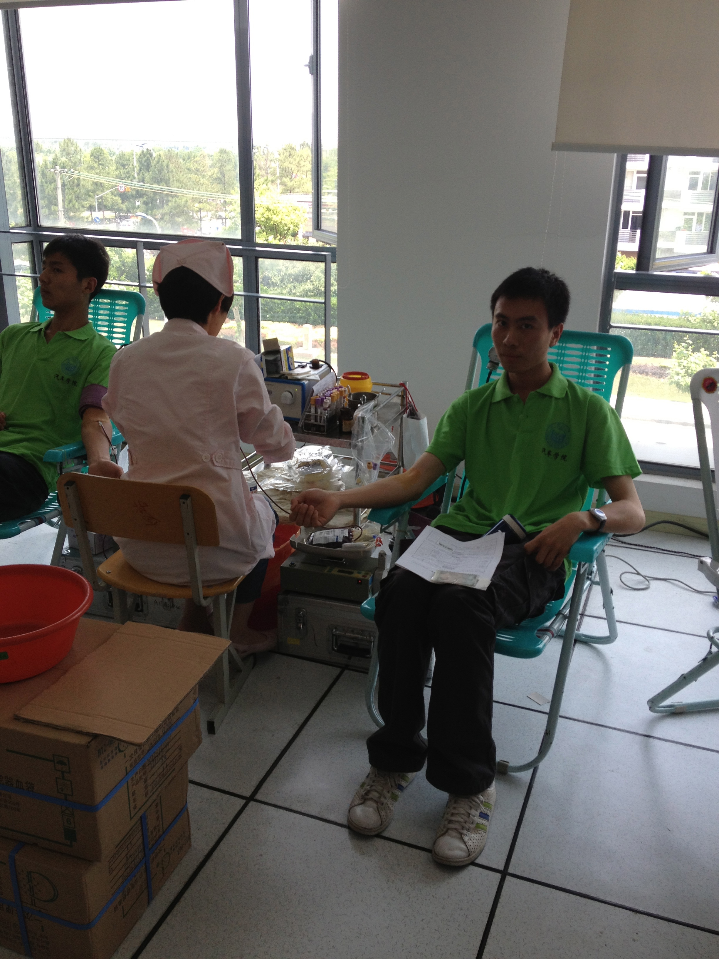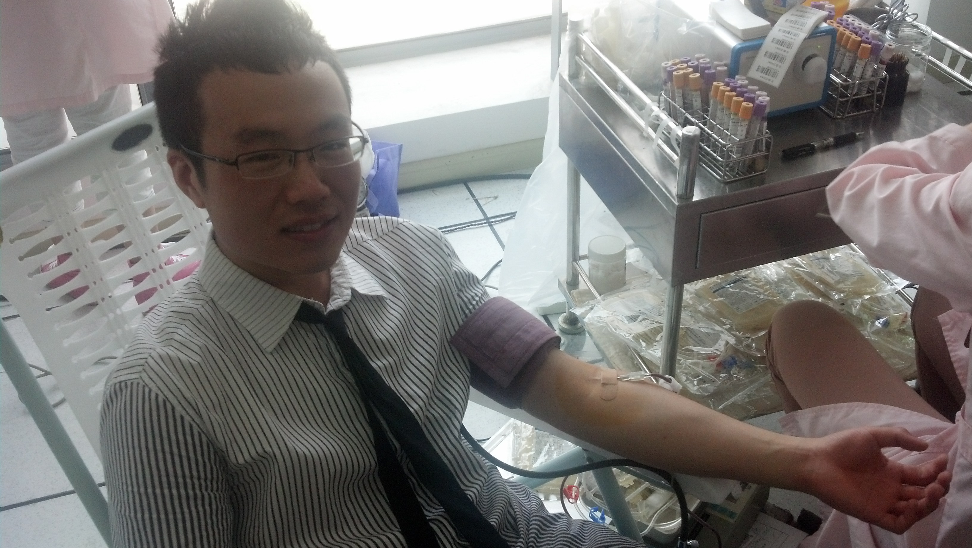 学子历年来都在义务献血中表现积极,早在两个星期前各学生党支部就开展了义务献血的倡议和宣传工作。上午十点半左右,2011级本科各班长在支部牵头下,组织本班同学集中来到F楼一楼大厅参与献血。多名同学由于第一次参与献血,均表现出紧张的心理,经过大厅里工作人员细心开导,渐渐缓解了同学的紧张情绪。来到三楼,同学们有秩序地排队、填表、验血、等待。大家在等待的过程中,曹静老师、徐夏平老师也赶到献血现场,看望正在献血的同学们,与感到不适的同学亲切交流,并帮助等待区的同学们做好心理准备。