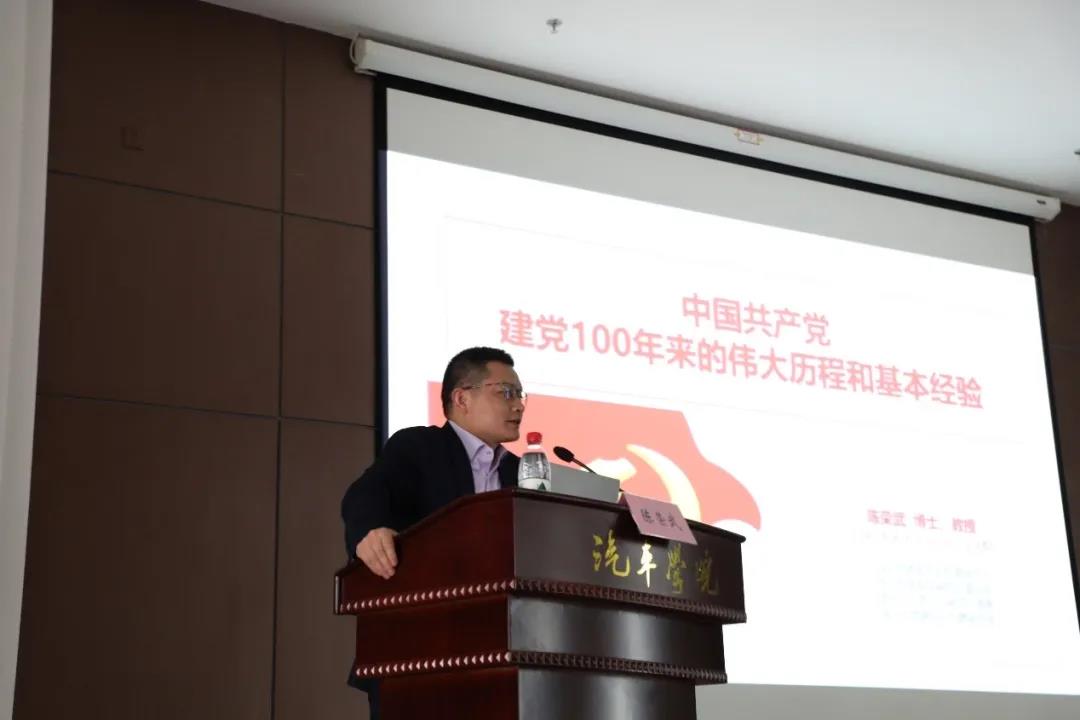 第四十三期“同车行”党委特邀报告于新能源汽车工程中心二楼报告厅举行,上海市党建研究会特邀研究员、上海市形势政策研究会副会长、上海市马克思主义研究会理事陈荣武教授应邀为菠萝视频