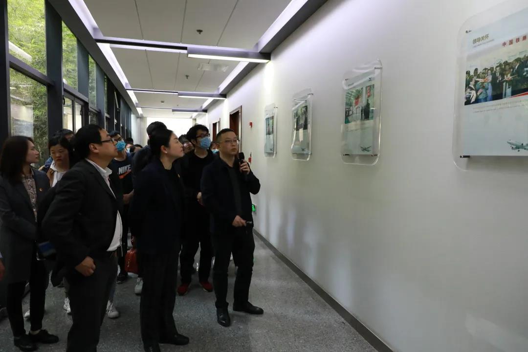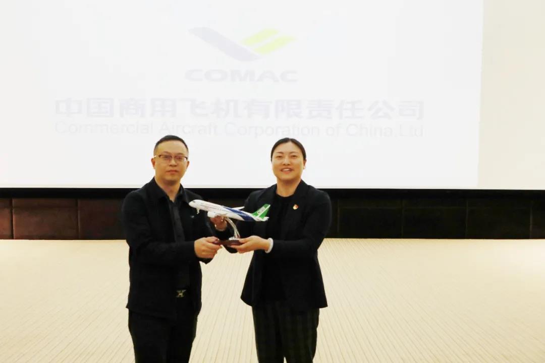 师生党员在商飞设计研究院飞机支持工程技术所蒋君仁所长的陪同下,首先来到了商飞集团的全景沙盘和发展历程展示区,详细了解了商飞集团的各组成单位和10多年来取得的主要成就。沿着习近平总书记视察时走过的路线,参观了研发中心的航电重点实验室和铁鸟综合试验大厅。接着,登上C919模型机,进入机体内部,学习飞机部件对接情况及组装流程,更加真实地接触国产大飞机。最后,大家观看了《光荣十载,筑梦蓝天》和习近平总书记视察商飞集团两个纪录片。