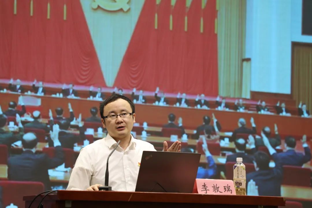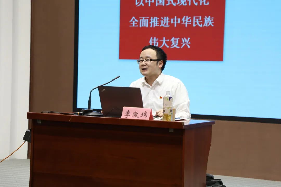 李敦瑞老师介绍了党的二十大召开的背景与意义,指出党的二十大是在全党全国各族人民迈上全面建设社会主义现代化国家新征程、向第二个百年奋斗目标进军的关键时刻召开的一次十分重要的大会。他用大量生动的案例讲解了历次党代会的精神延续,深入解读了党的二十大精神,阐释了中国特色社会主义的丰富内涵。他强调,党的二十大将科教兴国战略提到了前所未有的高度,体现了党和国家对高校教育、人才培养、科研投入、产学研转化以及科技发展等方面的高度重视,号召广大师生不断增强学习党的二十大的思想自觉和行动自觉,在专业领域不断深耕,实现科技科研的自立自强。