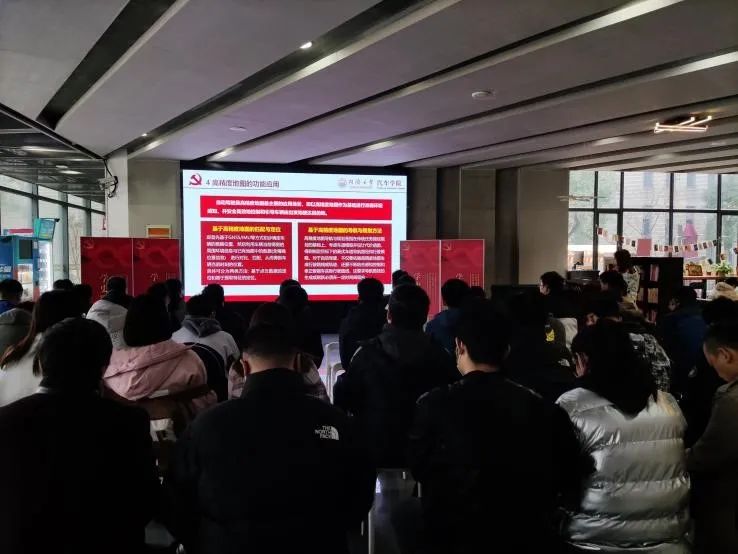 本科生第一党支部赵文瑞同学以高精度地图在智能驾驶中的应用为例,从概念、数据结构、生产流程、 功能应用的方面介绍了智能汽车新技术的发展并对未来展望,激励了新时代的青年学子坚定理想信念,牢记初心使命,要学好专业知识,增强自身本领,以奋斗放飞青春梦想,为实现中华民族伟大复兴的中国梦贡献青春力量。