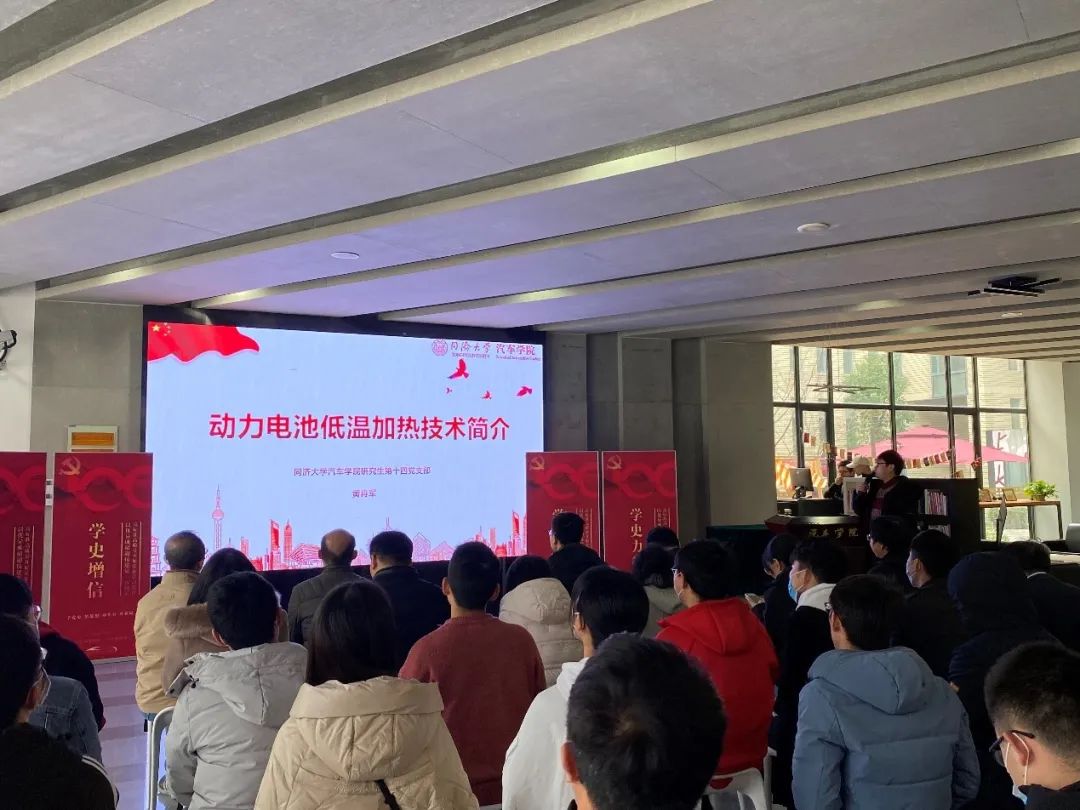 本次活动内容分为两部分,“论组织师生有力”理论学习、动力电池低温加热前沿技术报告两大部分。通过介绍“论组织师生有力”的相关理论,以及学校党委结合自身实际,结合新时代高校党建“双创”工作重点任务指南等开展的“组织师生有力”相关探索,向教工和学生党支部分别提出了一些建议。在前沿技术报告中,介绍了目前动力电池在低温下存在的问题和低温加热技术的作用,以及目前几种主流的低温加热技术在推广、商用和技术上的各自的优缺点,以及未来的技术发展方向。