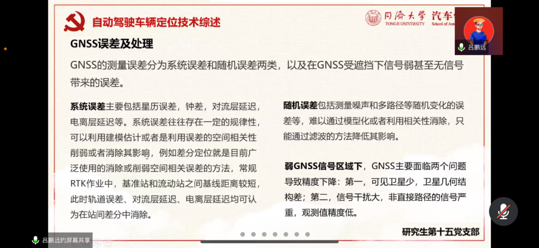 本次活动由理论学习和专业知识分享两部分组成,分别为“学习十九届六中全会精神”和“自动驾驶车辆定位技术综述”。