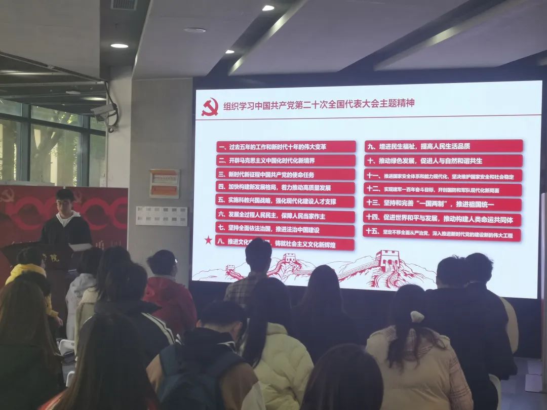 首先,由研究生第八党支部鲁晨昱同志带来主题为“学习党的二十大精神,推进文化自信自强”的理论知识分享,回顾了党的十八大以来推进文化自信自强的制度和举措,重点学习了二十大报告中关于推进文化自信自强的新观点、新论断、新思想,学习了文化艺术领域专家对相关内容的心得体会。本次分享强调广大汽车青年要积极投身汽车文化的宣传普及中,为推进文化自信自强、实现中华民族伟大复兴提供更为强大的精神力量。