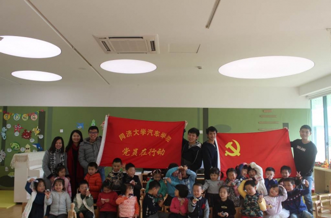 传统活动,本支部秉承这一优良传统,组织了这次活动。本次活动在中福会新城幼儿园举办,主要分为汽车文化宣讲、你问我答和汽车模型制作三个环节,结合幼儿园“交通月”的主题,利用志愿者们对汽车知识和汽车文化的了解,以小朋友喜闻乐见的形式向孩子们普及汽车安全知识,并与他们进行游戏互动。本次活动不但向幼儿园的孩子们普及了乘车安全知识,更是本支部党员更是利用专业知识服务社会。此次活动使得党员们更加意识到了自己肩负的社会责任,专业的学习也更有动力。