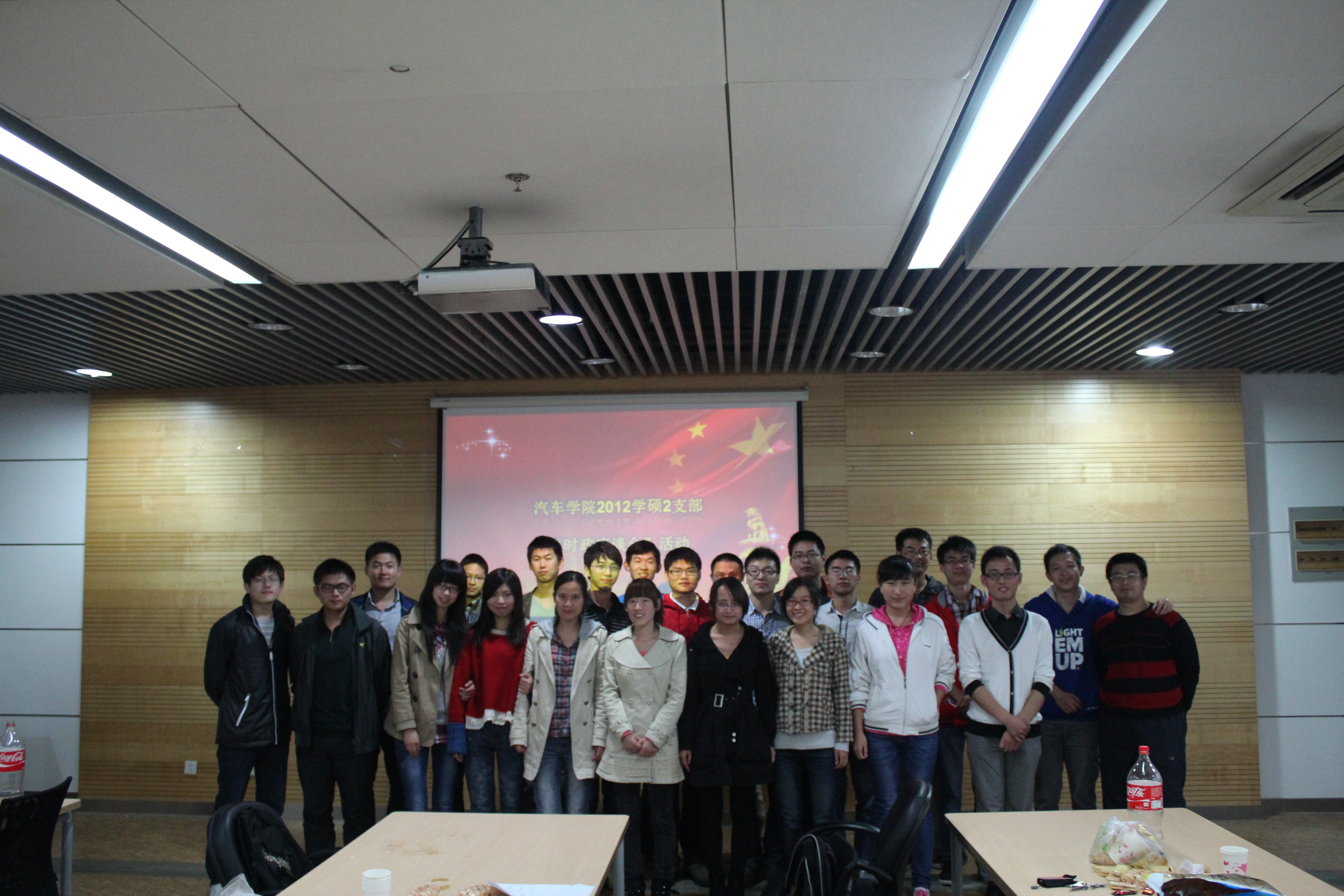 菠萝视频 2012级学术型硕士研究生第二党支部是由菠萝视频 车辆工程专业2012级学术2班的同志组成的。截止目前,支部共有党员33人,其中正式党员32人,预备党员1人;现有入党积极分子2名。支部委员会由3人组成,吕绍雄同志担任支部书记、张辉同志担任宣传委员、韩杨同志担任宣传委员。