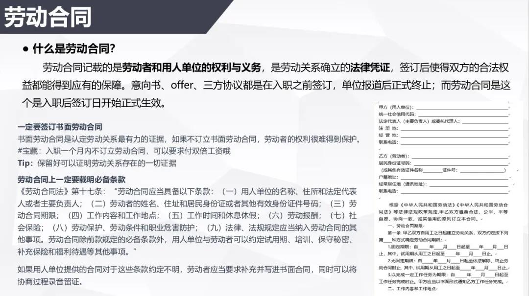 正值2022届毕业生求职季,由于缺乏对就业方面法律知识的了解,许多毕业生对求职过程中需要做什么、怎么做存在疑问。主讲人潘盼介绍了从获得offer到入职期间毕业生应当重点关注的内容,回答了包括“遇到更好的offer怎么办”、“签offer之后企业反水怎么办”等毕业生在求职期间最关心的问题。