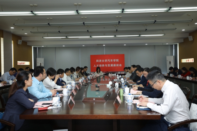 党委书记曹静、院长张立军、副院长谭丕强、党委副书记李红出席了本次会议。来自23家中国汽车行业知名整车及相关零部件企业的人力资源总监、高级经理等代表参加了此次座谈会。校企双方围绕未来汽车行业对于人才的需求及同济汽车人才培养改革及校友发展情况等主题进行了深入的交流和探讨。