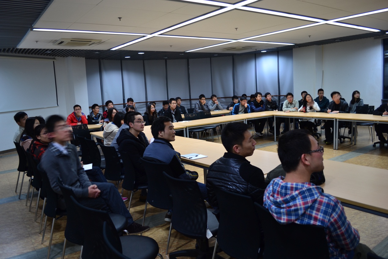 首先,他们各自分享了自己的求职面试历程以及遇到的问题与结局方法。甘奕和同学详尽地向大家讲述了他申请管培生之路,从一汽大众到ABB(中国),再到花旗银行,每一次面试都让人如同身临其境。甘同学还给大家提供了很多建议和他多次面试总结出来的秘籍,大家都感触良多,意犹未尽。