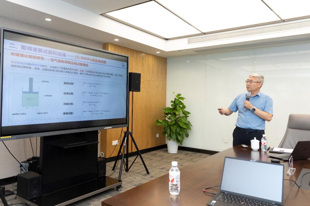 接下来的会议由专家组长主持。张存满从总体执行情况、取得的重要成果与进展等方面汇报了项目中期完成情况,5位专家就关键装备、安全性和液氢加氢站等多方面的研究内容与进展进行质询。