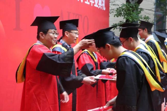 最后,钟再敏、谭丕强、邓俊、赵治国、王宁、林瑞、侯永平、吴宪、靳畅、董光宇等十位老师为毕业生颁发毕业证书、授予学位,并拨穗。