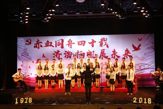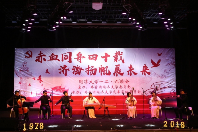 2018“一二·九”歌会于9日晚在嘉定校区济人楼圆满落幕。歌会以“赤血同舟四十载,济海扬帆展未来”为主题,旨在展现同济学子精神风貌, 培养学生家国情怀,敲响时代最强音。
