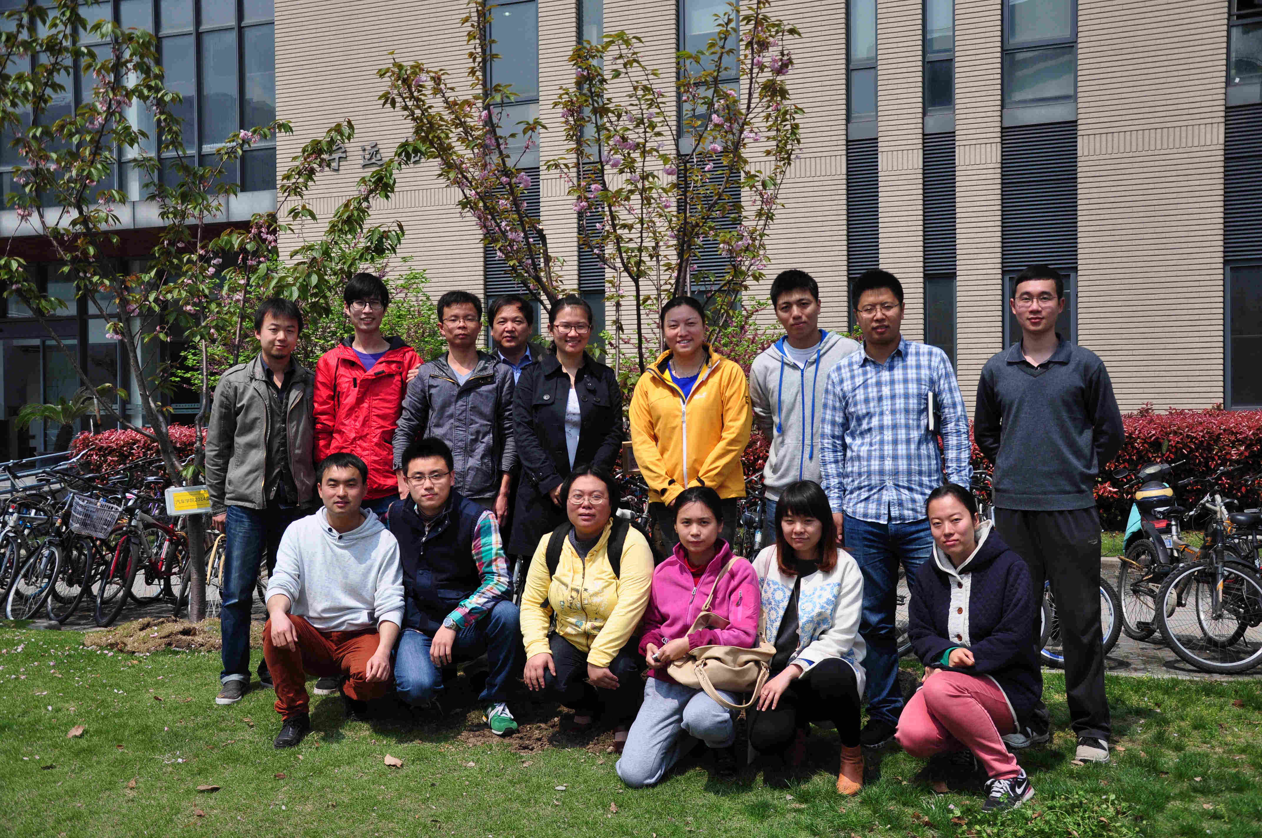 首次由博士班级向母校赠送毕业礼物。一直关心博士生科研进展和思想动态的党委副书记曹静老师、学工办葛畅老师、徐夏平老师、刘向老师、班主任陈觉晓老师参加了这次植树活动。老师和博士生们悉心为樱花树培土、浇水,并在樱花树前合影留念。