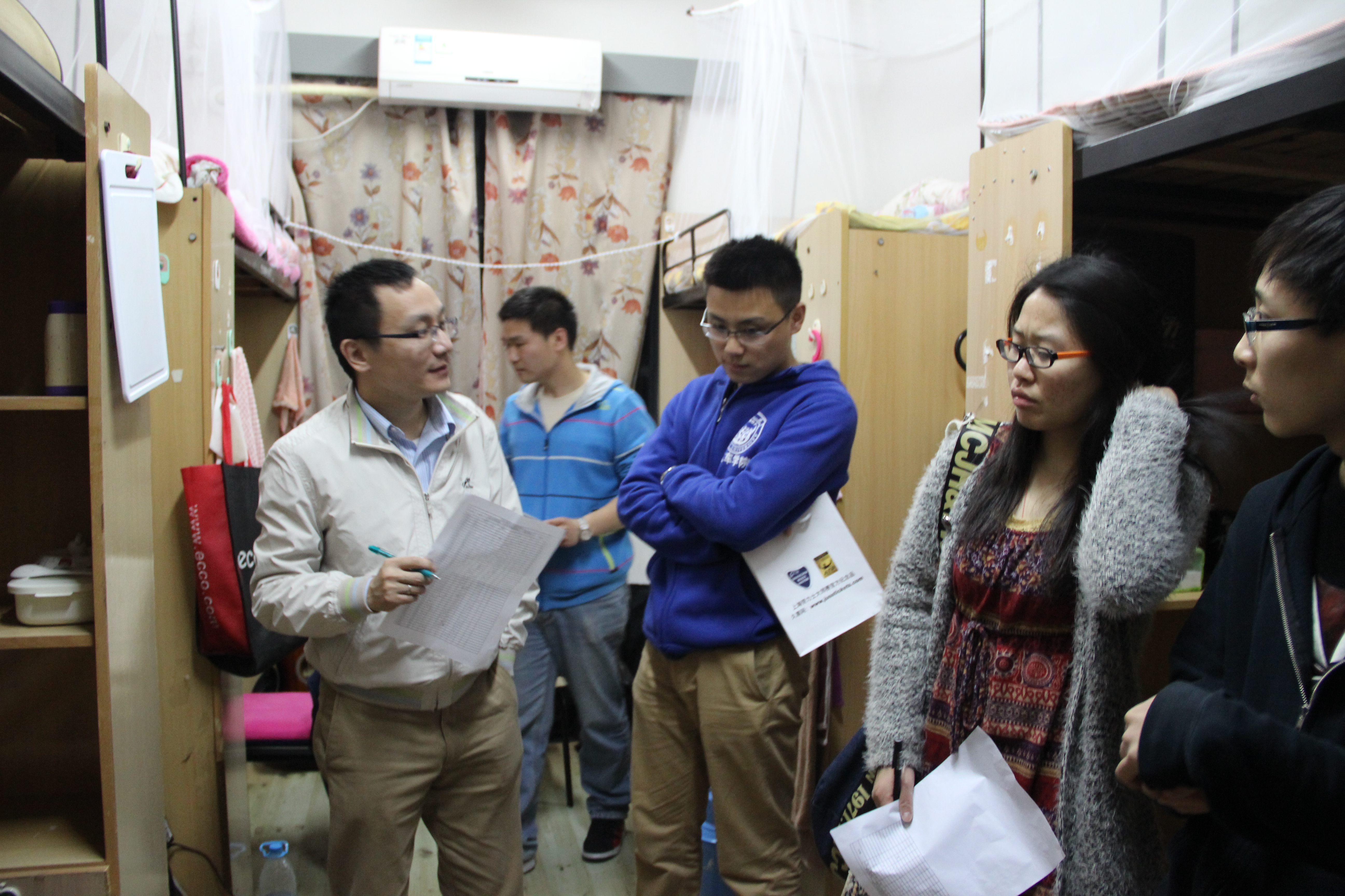 4月22日晚,13级各班班导在刘向老师的带领下,组织了一次走访寝室暨文明寝室检查活动,由各位班长陪同,走访了西南十楼,学四楼等宿舍。本次活动的目的在于提醒大家注意寝室卫生,创造良好的生活和学习环境。18:45,各位老师来到了西南十楼逐个走访检查,在检查过程中,各位老师都认真给各寝室评定了分数。约20:30,大家又来到了学四楼检查女生寝室,老师们给了一致好评。约20:50,两个宿舍楼都走访完毕,各位老师开会讨论了本次走访的结果。在检查过程中,我们发现,部分寝室的卫生情况有待提高,总体来说,寝室环境良好,老师鼓励同学们再接再厉,发扬寝室文明精神。