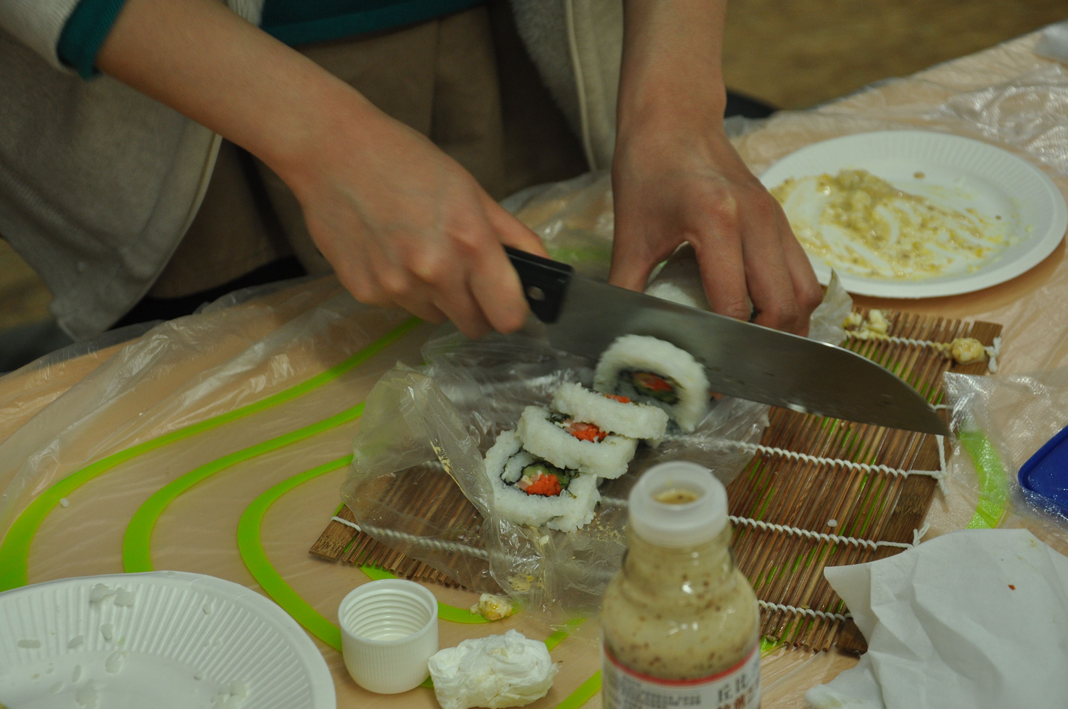 A311正式开始,一边是激情四溢的棋牌桌,一边是放满食材的料理区,纸牌与桌面摩擦的声音,刀具与食材摩擦的声音,与在场所有同学的欢声笑语融合在一起。女生们分组进行寿司和水果拼盘的制作,大家都展现出了自己卓越的料理技巧和精湛的刀法,令围观的同学在赞叹不已的同时又大饱口福。也有不少男生上前展露一下自己的厨艺,或者尝试一下寿司的制作,女生们都热心地前去帮忙。棋牌大赛结束后,参赛者纷纷前来品尝女生们做的寿司和水果拼盘,好评连连。不知不觉中,女生节闭幕联谊会就在其乐融融的氛围中结束了,同时也宣告了“未闻花名”菠萝视频