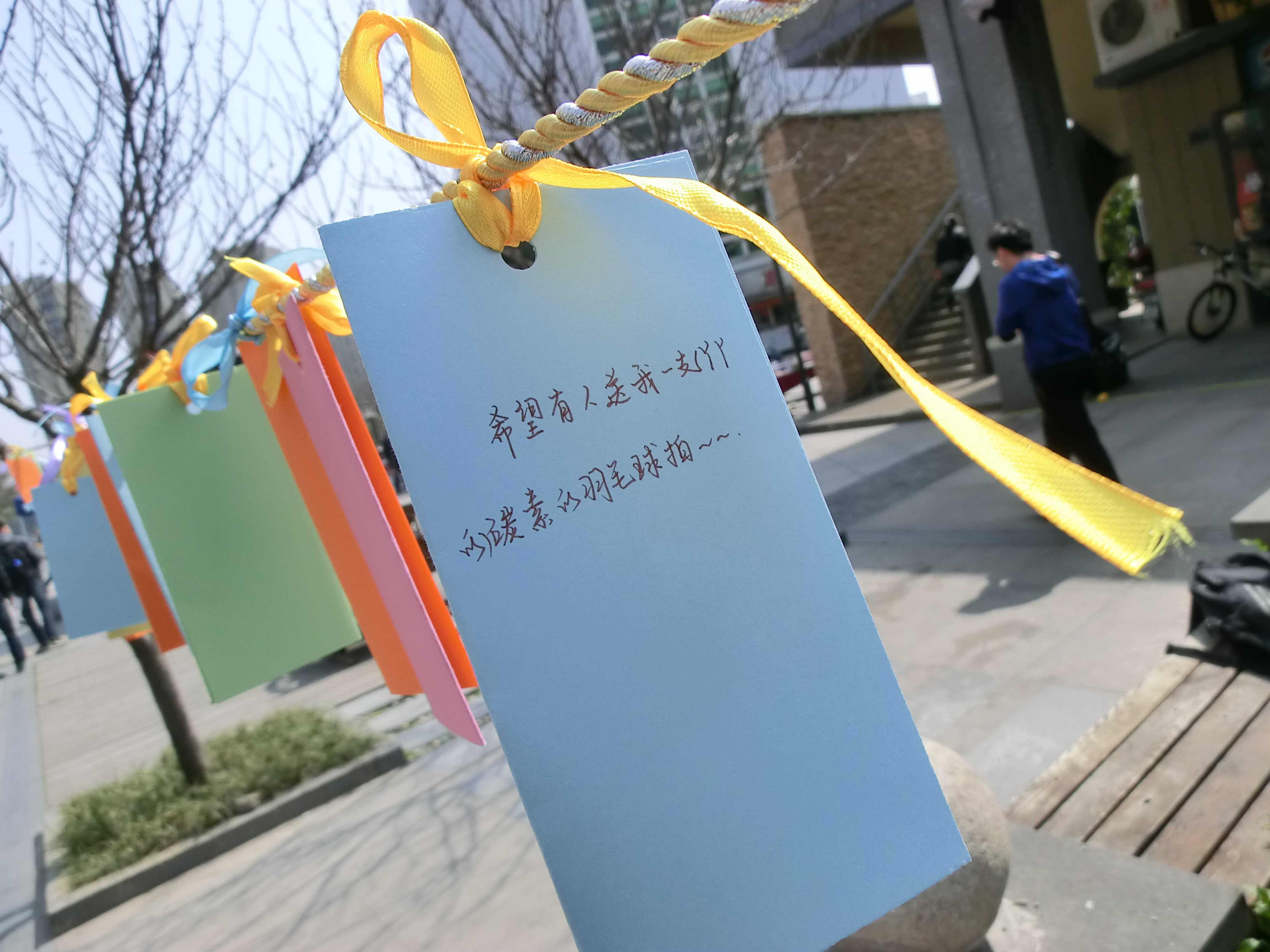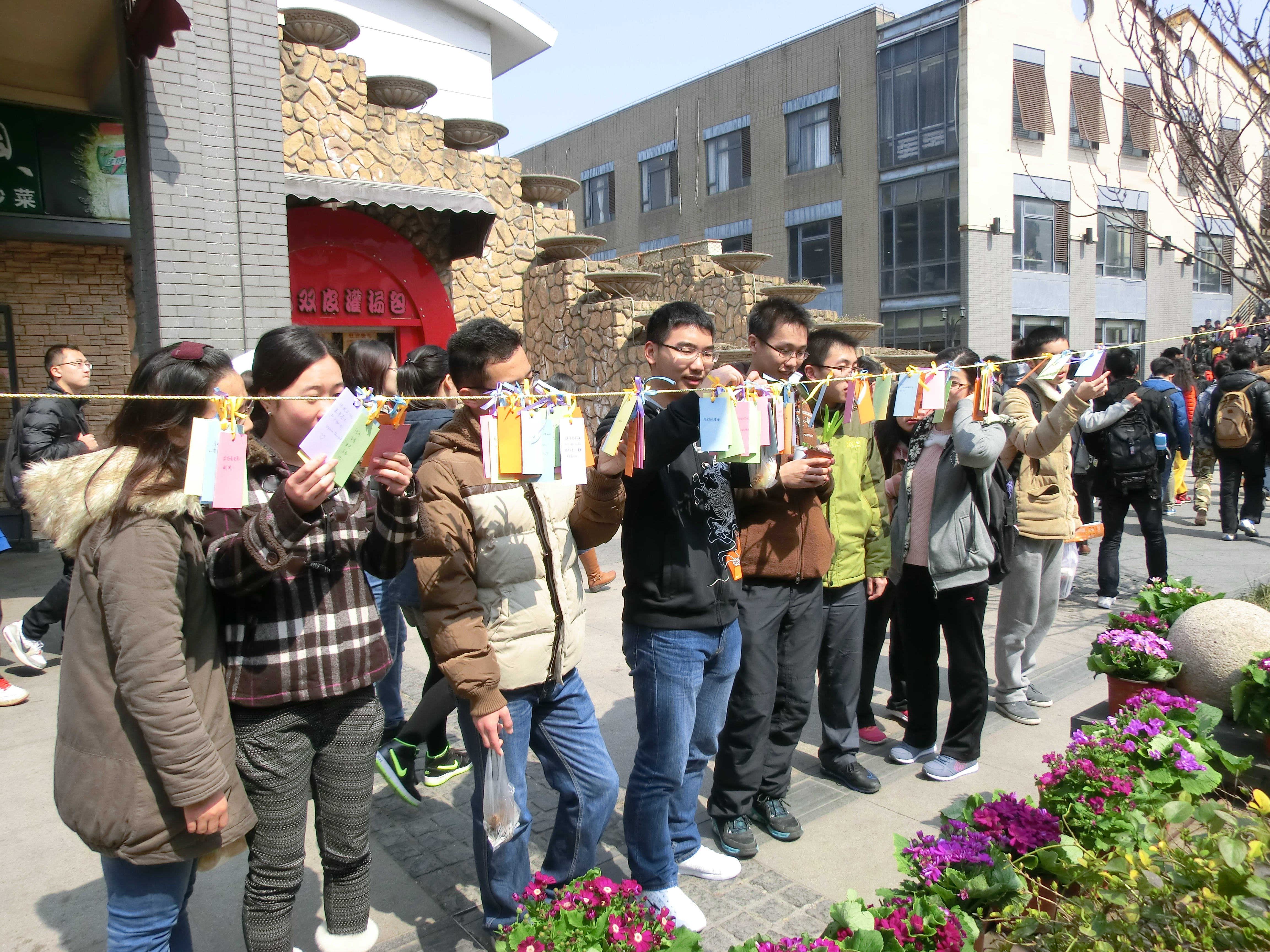心愿卡也是女生节的传统活动。本次活动采用了悬挂展出的方式,将菠萝视频女生提前写好的心愿卡挂在绳子上,并在新天地、寝室楼道里进行展示,由男生们观阅挑选,摘下心愿卡后便为其主人实现她的愿望。在周二的新天地活动当天,往来人流络绎不绝,而时时都有驻足欣赏心愿卡的同学,或许是出于好奇,或许确实想为女生们带去一份心意,无论如何都将为挂卡人和摘卡人创造出一段美好的邂逅与回忆。