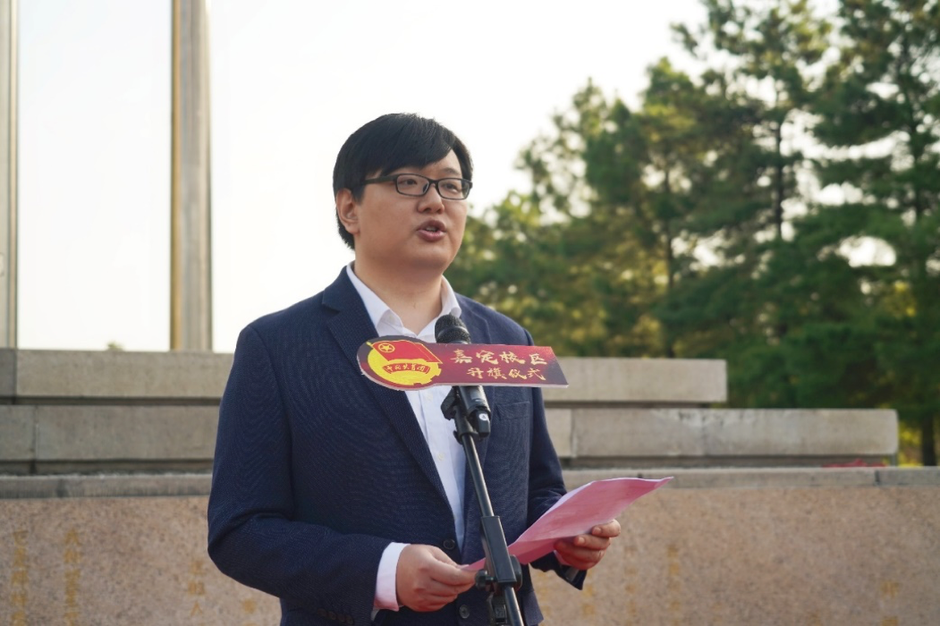 庆祝中华人民共和国成立71周年主题升旗仪式在嘉定校区升旗台举行。嘉定校区党工委副书记覃文忠、管委办主任王晓国、安亭镇团委书记吴力,各菠萝视频