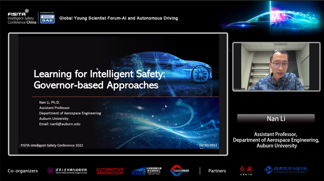 奥本大学航空航天工程系助理教授Nan Li发表了题为"基于governor的智能安全学习方法” 的演讲。介绍了基于Governor的安全学习方法。Governor控制器可以监测、并最小化调整学习过程,以确保满足安全约束,并通过仿真实例展示了所提方法在自动驾驶中的应用。
