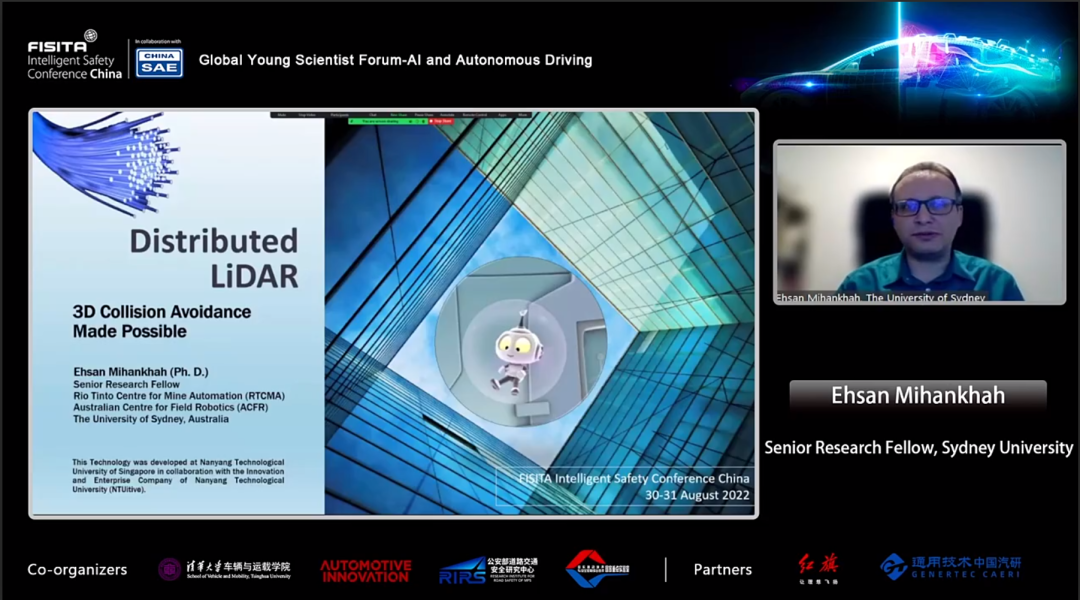 悉尼大学高级研究员Ehsan Mihankhah发表了题为"分布式激光雷达” 的演讲。对分布式激光雷达作为传感器的优势进行了细致的讲解,这种技术比传统方法的成本更低、且车辆外部视觉效果也更好。