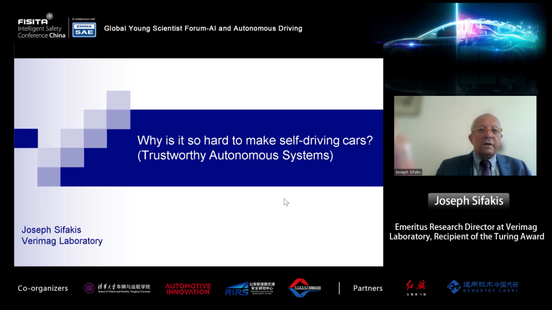 图灵奖得主、Verimag实验室名誉研究主任Joseph Sifakis教授发表了题为"可信赖的自主驾驶系统” 的演讲。针对自动驾驶系统目前面临的驾驶场景复杂多变、信息安全及人因安全等挑战,提出需要设计可信赖的自主驾驶系统,需要建立新的研究方法论,而不是仅基于模型研究。通过稳健而不激进的方法,逐步提升自动驾驶的层级。