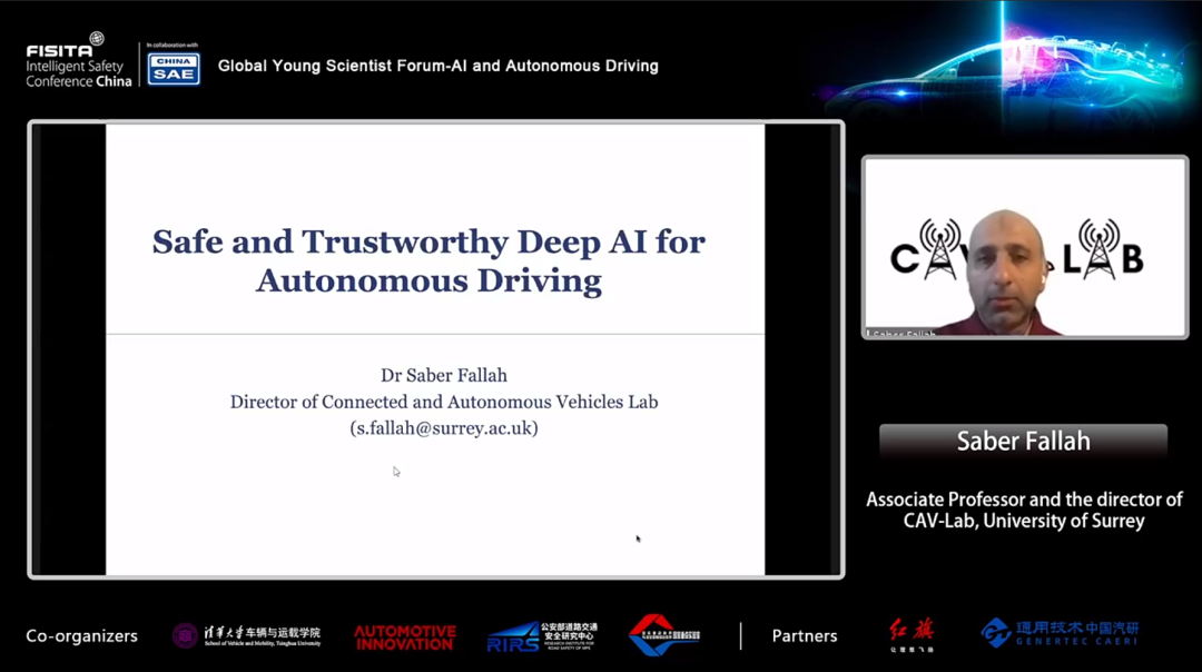 萨里大学副教授Saber Fallah发表了题为"深度人工智能保障安全可信的自动驾驶” 的演讲。介绍了用于自动驾驶的深度学习技术的验证,以及解决安全问题的新方案,旨在确保深度神经网络驱动的自动驾驶汽车安全。