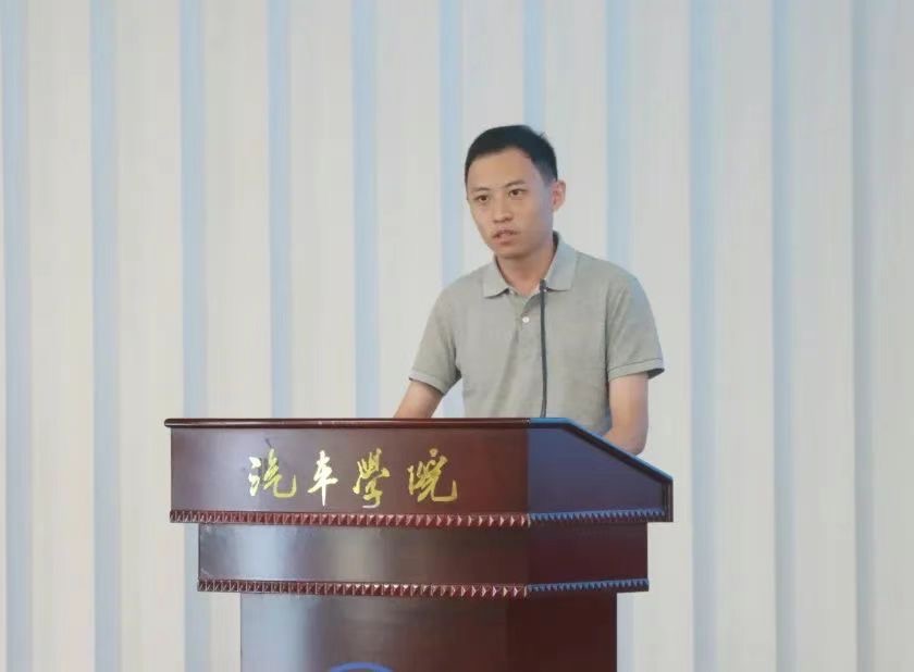 院长协理、2021级(1)班班主任蔡黎明作为班主任代表发言。蔡黎明老师分别以优秀青年教师、班主任以及学长三个身份向同学们提出三点希望:一是树立远大目标,秉承初心,为中国汽车事业而努力奋斗;二是把握校园时光,打牢基础,不断充实自我迎接新挑战;三是坚持自省,强大内心,磨练意志品质。