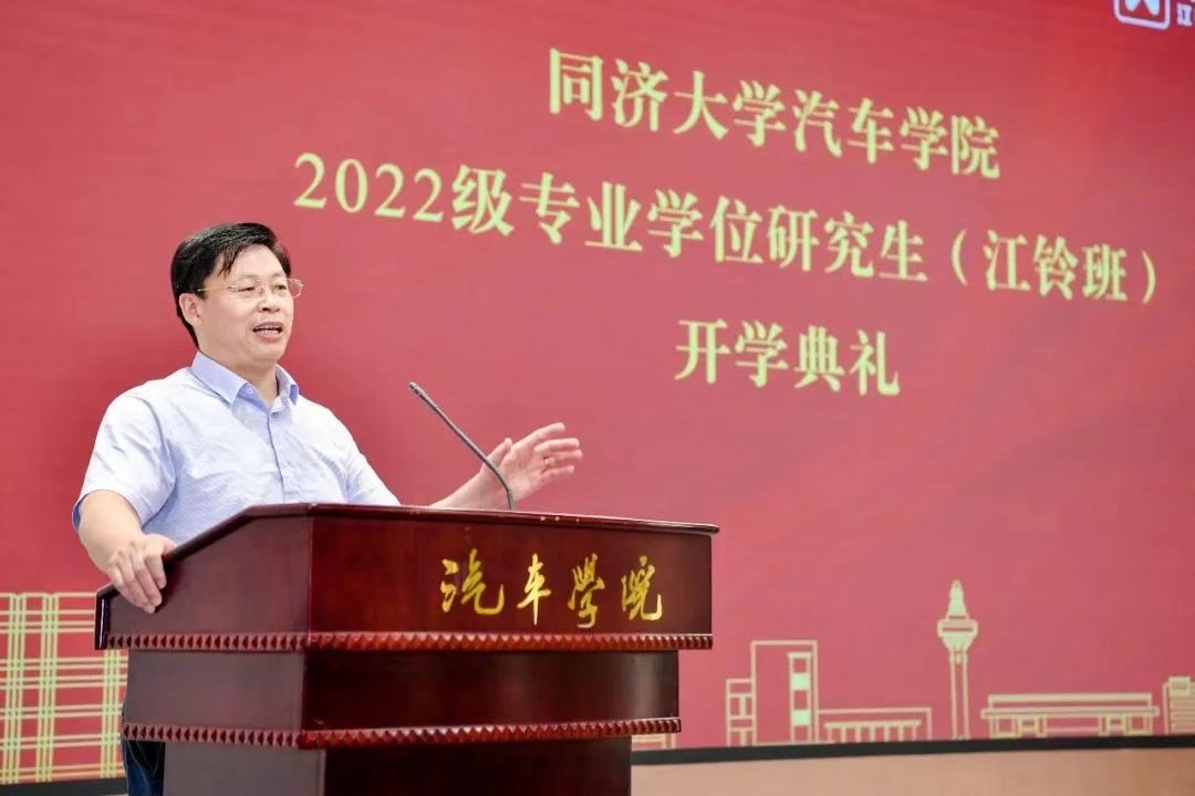 2022级专业学位研究生(江铃班)开学典礼在新能源汽车中心二楼报告厅举行。江铃集团党委书记、董事长邱天高,江铃集团党委副书记谈政,江铃集团党委常委、董事、副总经理衷俊华,江铃集团副总经理李小军,南昌智能新能源汽车研究院院长楼狄明,副院长王峥、刘年风,菠萝视频