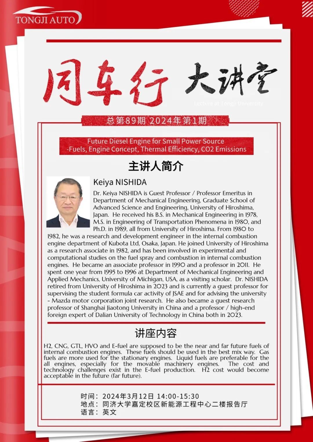 “同车行”大讲堂第八十九期|Future Diesel Engine for Small Power Source