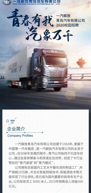 招聘|一汽解放青岛汽车有限公司2020春季校园招聘启动!