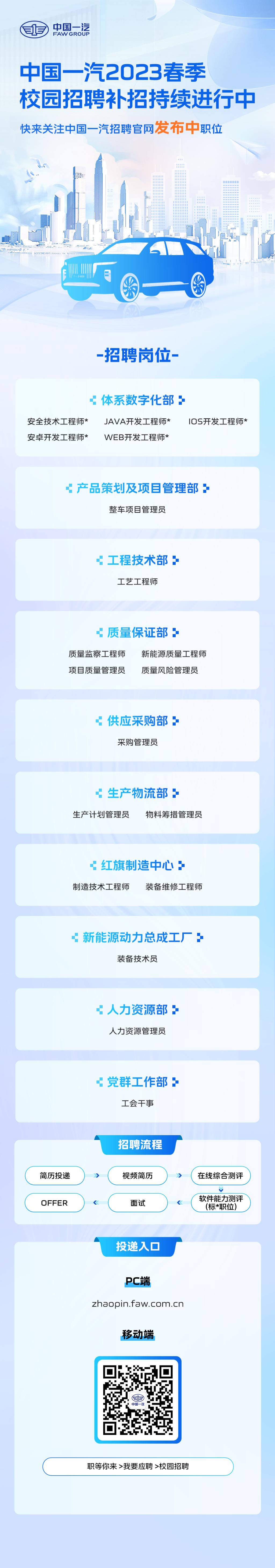 招聘 | 中国一汽2023春季校园招聘补招持续进行中