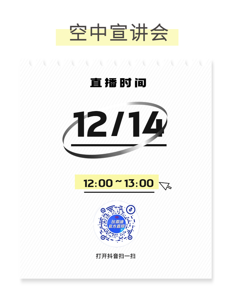 空中宣讲会 | 比亚迪直营店销售招聘专项